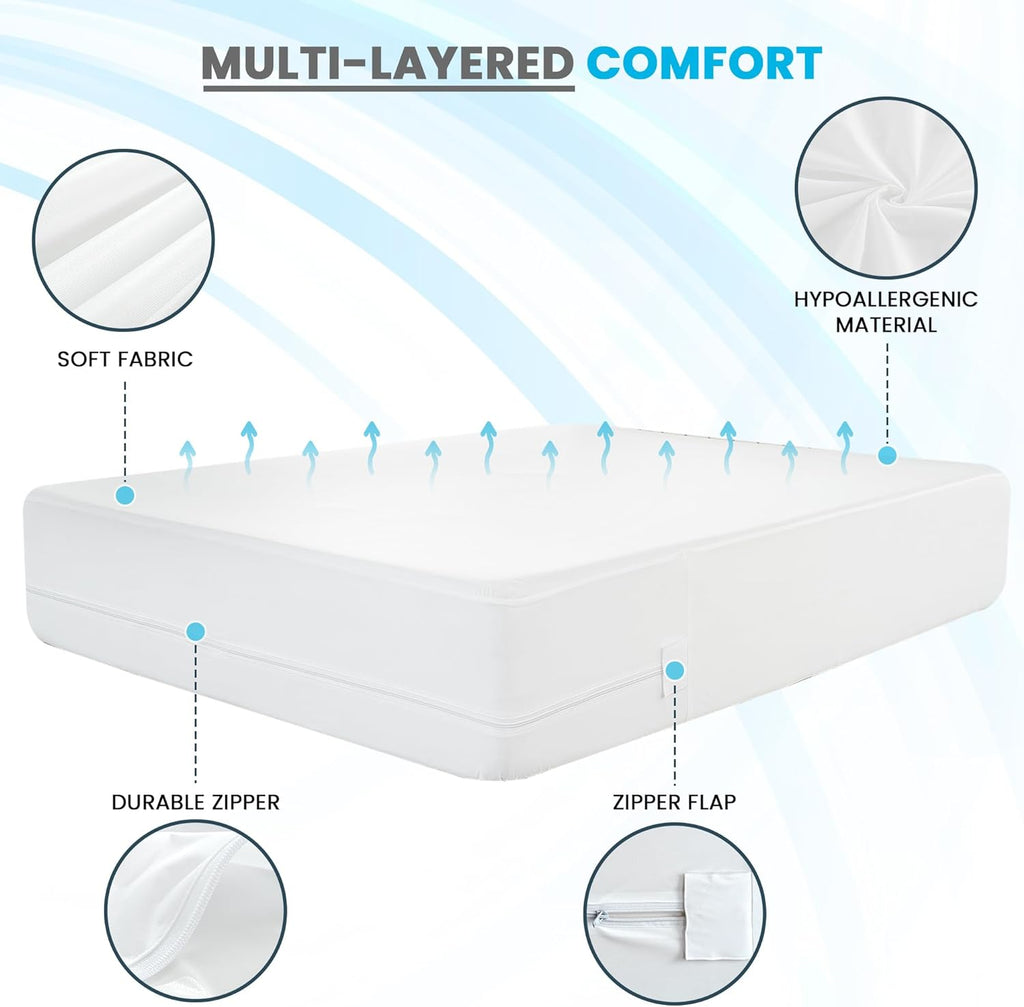 - [Superior Protection] Our mattress encasement protector is designed to safeguard your mattress against spills, stains, ensuring a clean sleeping environment with our waterproof mattress protector